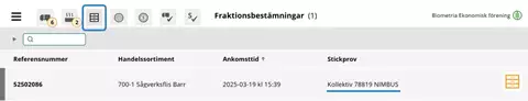Observera! För flismaterial kan det falla ut ett torrhaltsprov, ett fraktionsprov eller båda. Var uppmärksam på vilken typ av prov som har fallit ut och att varje enskilt prov har ett unikt referensnummer.