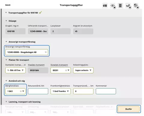 Transportuppgifter