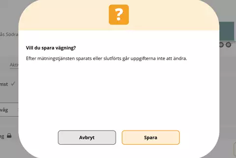 Slutför vägningen genom att klicka på Slutför eller klicka Avbryt för att gå tillbaka och läsa in vikten på nytt.