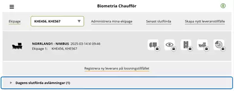 När ett leveranstillfälle är slutfört kan du som chaufför se det under raden Dagens slutförda avlämningar.