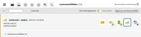 - Klicka på Registrera nytt leveranstillfälle.
