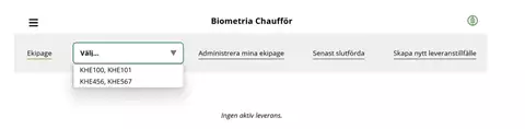Chauffören loggar in i Chaufförsklienten och väljer aktuellt ekipage för lossningstillfället.