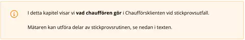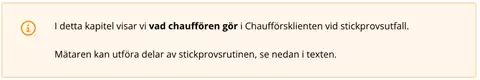 Om stickprov utfaller på leveranstillfället meddelas chauffören omedelbart efter att chaufför valt att Registera ny leverans på lossningstillfälle, se kapitel 1 -Leveranstillfällen vid fordonstransport.