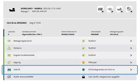 Efter att chauffören bekräftat att stickprovstrave har utfallit registreras vägning vid ankomst enligt ordinarie rutin.