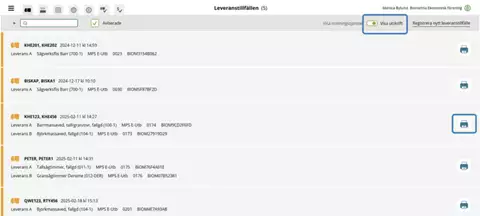 Du kan skriva ut dessa kvitton både under och efter mätningen. Under fliken Senast slutförda syns det inte på ikonerna att prov har utfallit, men samtliga kvitton finns tillgängliga under respektive leveranstillfälle.