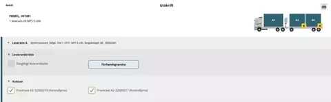 Även i Chaufförsklienten finns tillgång till samtliga utskrifter som rör aktuellt leveranstillfälle, stickprov inkluderat.