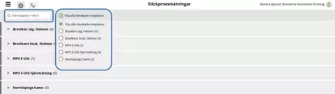 Du kan även söka på mätplats eller referensnummer i sök-rutan för specifik stickprovsmätning.