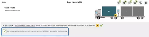 Chaufför får signal om kontroll- eller stickprov efter godkänd mottagningskontroll och märker traven enligt aktuell arbetsrutin.
