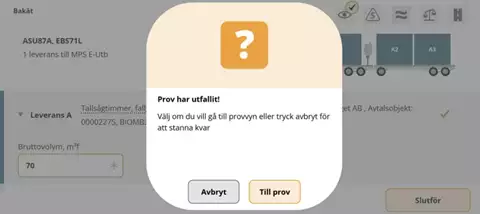 - Vid kollektiv med travmätning i flödet kommer signal om stickprov efter slutförd travmätning.
