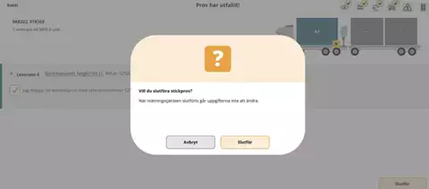 Efter att du intygat att kontrollprov lagts av för stockmätning ska du slutföra detta moment. Här har du chans att gå tillbaka och kontrollera uppgifter som du är osäker på, exempelvis vilken trave som ska läggas av.