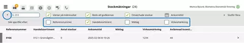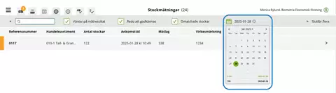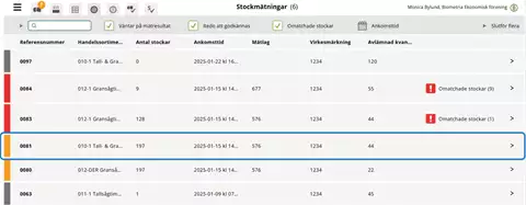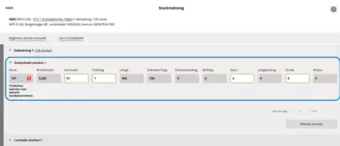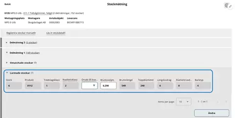Detaljerna om aktuell stockmätning syns i stocklistan.