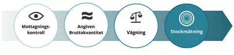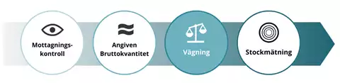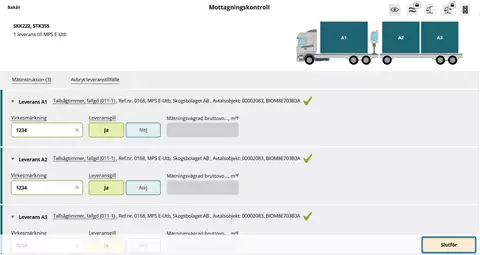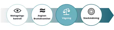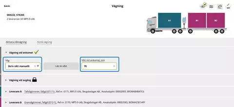 Godkännande av vägning vid ankomst kan utföras antingen av virkesmätare eller chaufför, beroende på vad flödet tillåter.