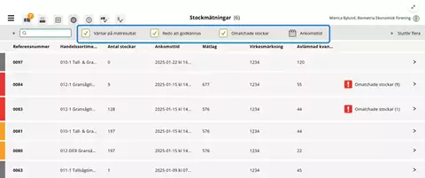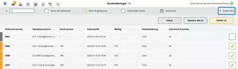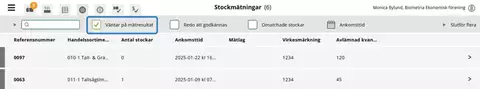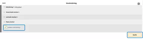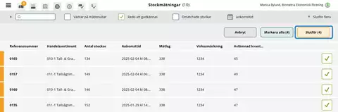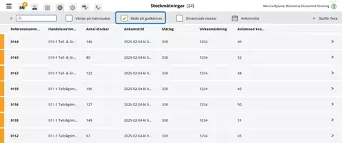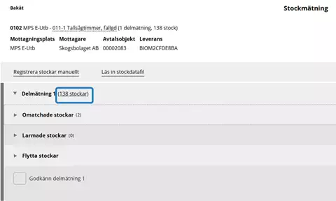 För att godkänna en eller flera delmätningar, välj fliken Stockmätning.