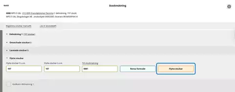 För att flytta ytterligare stockar från samma parti, välj knappen Rensa formulär för att ange andra stocknummer.