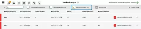 - Omatchad stock = avvikelse mellan avlämnat och inmätt handelssortiment. Kolla produktlistan för att avgöra korrigering.