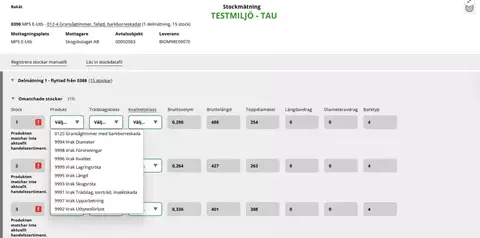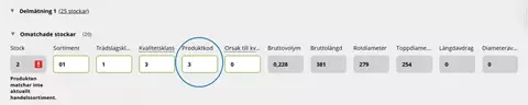 Vid byte av handelssortiment/trädslag i Mätplatsstödet (MPS) kan man behöva ta bort/lägga till produktkod för att stocken ska bli godkänd.