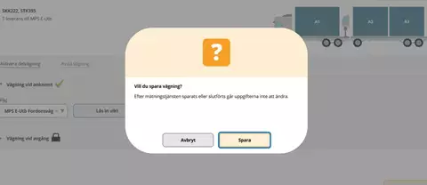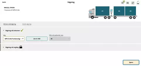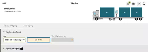 När ekipaget står på vågen ska vikten vid avgång läsas in, det kan göras av mätare eller chaufför.