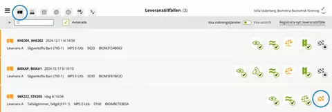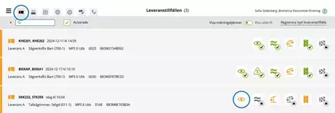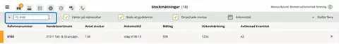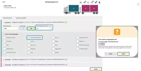 Mottagningskontrollen påbörjas i fliken Leveranstillfällen.