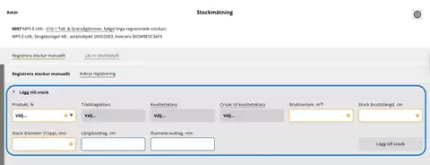I en stockmätning kan stockar registreras manuellt. För att registrera en eller flera stockar manuellt