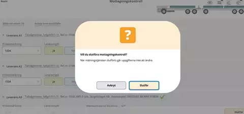 Om JA går det inte att avbryta leveranstillfället. I detta fall måste ursprungsmätningen genomföras och makuleras för att därefter registreras med rätt uppgifter.
