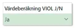 För att öppna upp möjligheten för värdeberäkning på kontrakt krävs att Värdeberäkning VIOL är satt till JA. Detta öppnar upp prisuppgifter under Radinformation.
