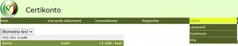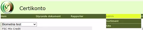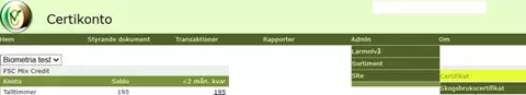 För att kunna redovisa certifierade kvantiteter i Certikonto behöver företaget ha en Site i Certikonto. Siten läggs upp av Biometria och beställs via ett formulär på hemsidan som finns under meny Tjänster – Certifierade volymer.