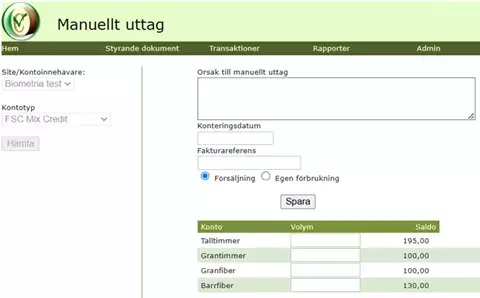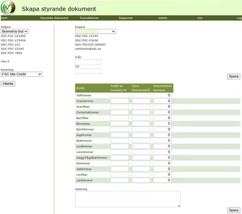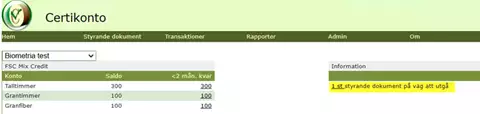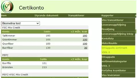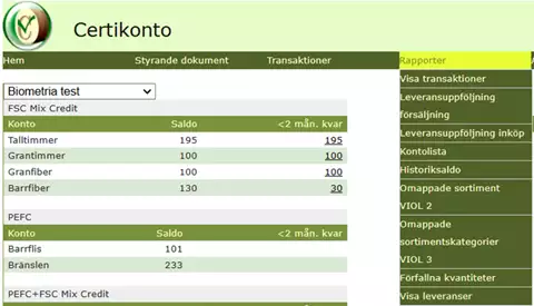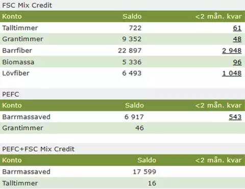 I Certikonto hanteras certifierade kvantiteter enligt regelverk för PEFC och FSC. Regelverken säger att: