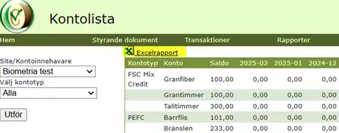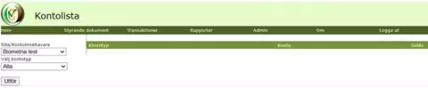 Vid klick på eventuell länk visas rapporten Kontolista för aktuell Site: