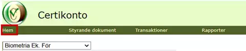 Efter inloggning i Certikonto hamnar du på menyval Hem.