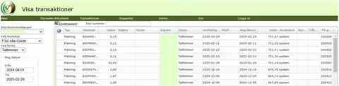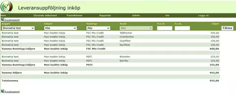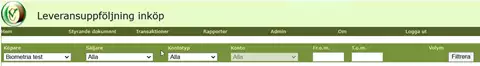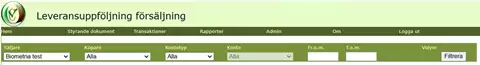 För att begränsa listan finns möjlighet att filtrera på Säljare, Köpare, Kontotyp och datum. Urvalet visas genom att klicka på Filtrera.