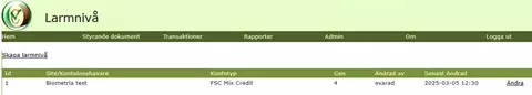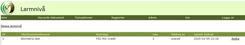 Det finns två olika behörighetsnivåer. Visa allt innebär full åtkomst till att se allt inom aktuell Site. Administrera allt ger åtkomst till alla delar av Certikonto, möjlighet till administration av styrande dokument och larmnivåer samt hantering av insättningar, uttag och överföringar.