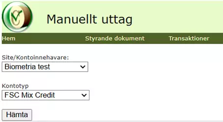Från konto för PEFC+FSC Mixed Credit kan överföring ske till antingen PEFC eller FSC Mix Credit konto. Vid överföring från PEFC+FSC Mixed Credit till FSC Mix Credit hänvisas till kap 11.5.