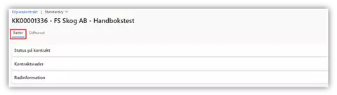 Ett köparekontrakt delas in i Rader och Sidhuvud. Nedan beskrivs vad som finns under Rader.