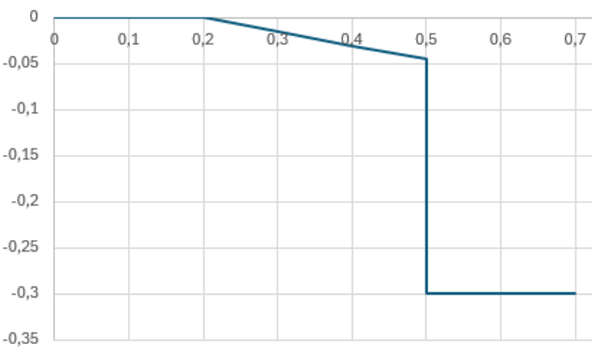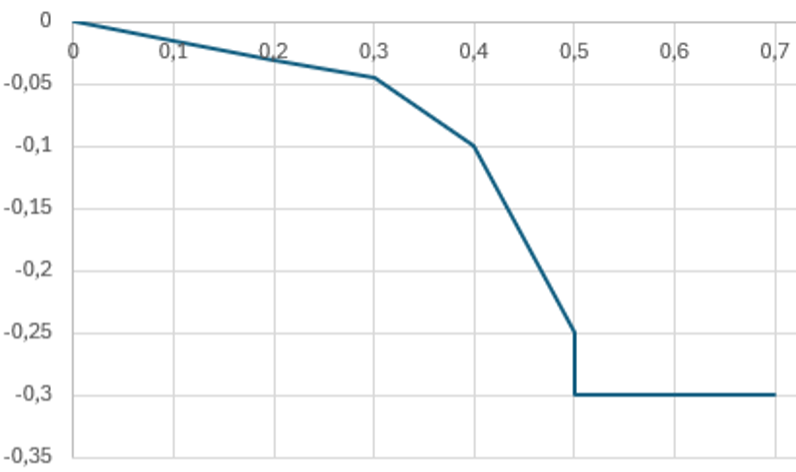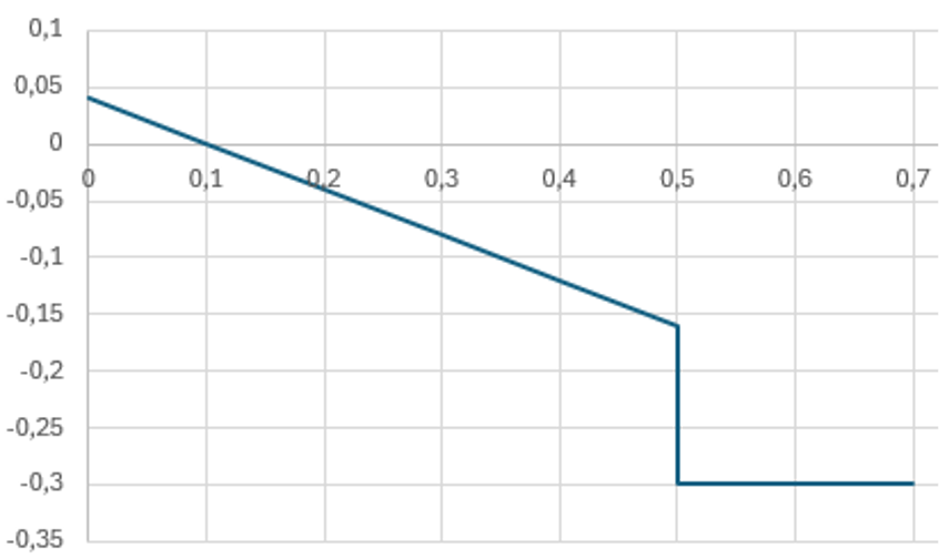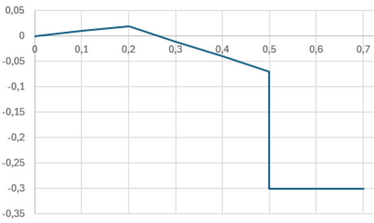 Larm 1: Skillnaden mellan ordinarie mätnings bedömda vrakandel (%) och stockmätta provets vrakandel (%) får uppgå till högst så många procentenheter som angetts i kollektivets “kvalitetsavvikelse-larm”. Enheten är procentenheter.