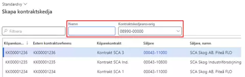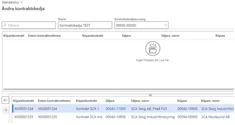 För att kunna skapa en kontraktskedja krävs minst ett köparekontrakt med status Aktiv.
