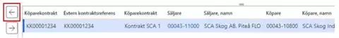 I detta läge kan man även ta bort det inlagda köparekontraktet genom att markera det och trycka på pilen som pekar till vänster.