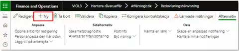 - Navigera till Redovisningshänvisning via menyerna (VIOL 3 - Hantera råvaruaffär - Affärslogistik - Redovisningshänvisning).