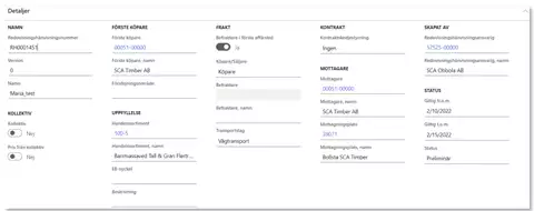 - Om Ja: välj huruvida pris från kollektiv ska användas under rubriken Pris från Kollektiv. Detta är till för kollektivvariant 1, timmerkollektiv då leden i kontraktskedjan måste stämma överens med leden i kollektivbeskrivningen.
