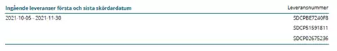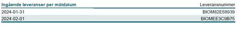 Ingående leveranser per mätdatum: Här visas de ingående mätningar (Leveransnummer) som mätbeskedet innefattas av under aktuella mätdatum.