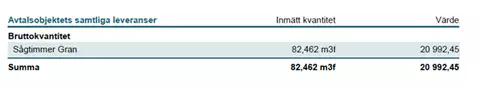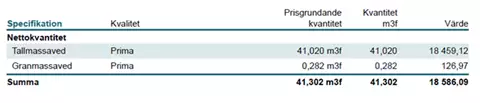 Specifikation: på detaljsidan på Nettokvantitet i detta fall nedan, visar handelssortimentet och kvantitet i m³f. Icke värdeberäknade kvantiteter skall alltid visa produkt på denna rad.