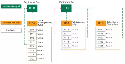 Sortimentskategorierna ägs av Biometria och är förutbestämda utifrån branschens behov. Behov av nya sortimentskategorier sker via Biometria.