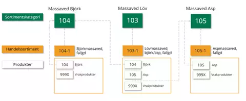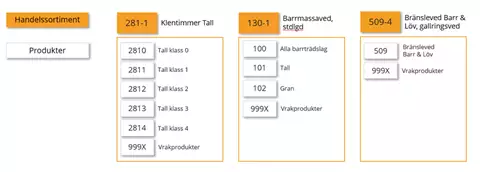 - Varierad produktuppsättning gör det inte lika tydligt för inblandade parter i affären vilka produkter som ingår i sortimentet och vidare vilka möjliga utfall för produktfördelning som finns dit man skickar virket.