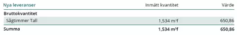 Massabruk B: Kan hantera både tall och gran. Vill ha virket fördelat på trädslag vid inmätning för att kunna följa upp och möjliggöra olika prissättningar baserat på produkt.