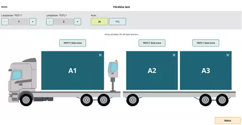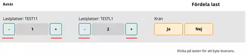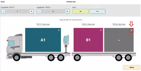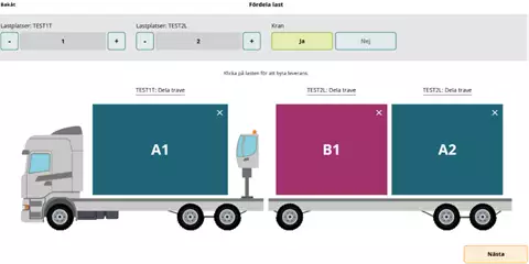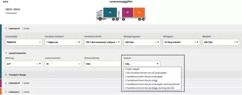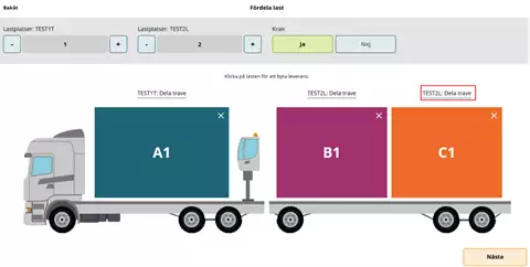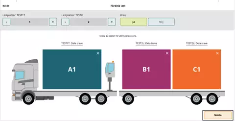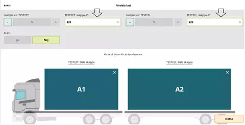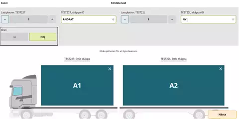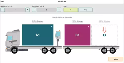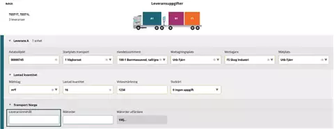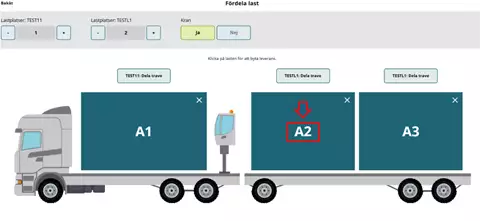 Suosituksemme on, että merkitsette kohdan täydestä lastista "Nej" (Ei) ja että tämä merkitään kuljetusasiakirjaan erikseen, kun ajoneuvoyhdistelmä lastataan toimituksilla eri mittauspisteisiin.