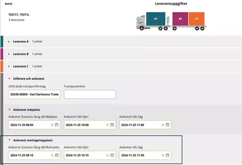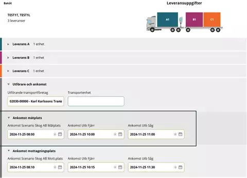 Voit esimerkiksi osoittaa, kuinka monta ajoneuvoyhdistelmää tiettynä ajankohtana on odotettavissa tietyllä toimialalla. Näin voi ilmoittaa myös mittauspaikan henkilökunnalle, että toimitus on tulossa, jolloin he voivat valmistautua mittaukseen.