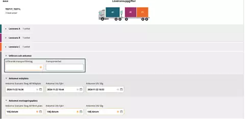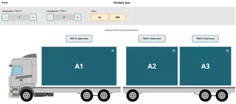 Kuvassa näkyy nyt kolme toimitusta jaettuina kolmelle lastauskohdalle.