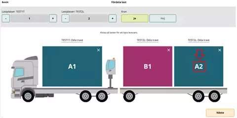 Toisessa toimituksessa, joka sijaitsee lastauskohdassa A2, on sinun napsautettava kerran "A2".