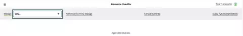 Olet tallentanut ajoneuvoyhdistelmäsi kohtaan "Mina ekipage" (Ajoneuvoyhdistelmiäni) ja kirjaudut Chaufförsklienteniin luodaksesi uuden toimitustapahtuman.