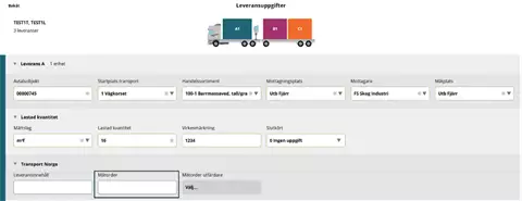 Jos sinulla on rahtikirja VSYS-järjestelmästä Norjassa, on rahtikirja täytettävä kenttään kohdassa "Leveransinnehåll" (toimituksen sisältö).