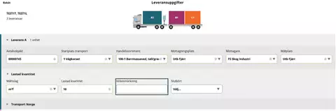 Syötä toimitustiedot ja Transport Norge